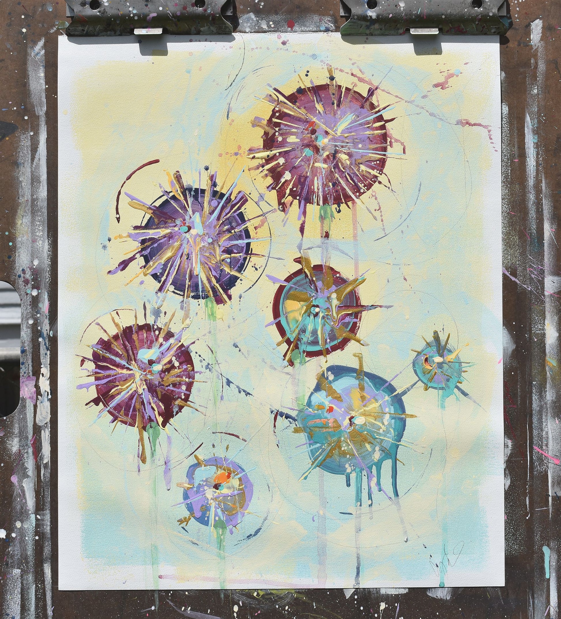 Allium Dreams 16″ x 20″ Abstract Painting on Unstretched Canvas
