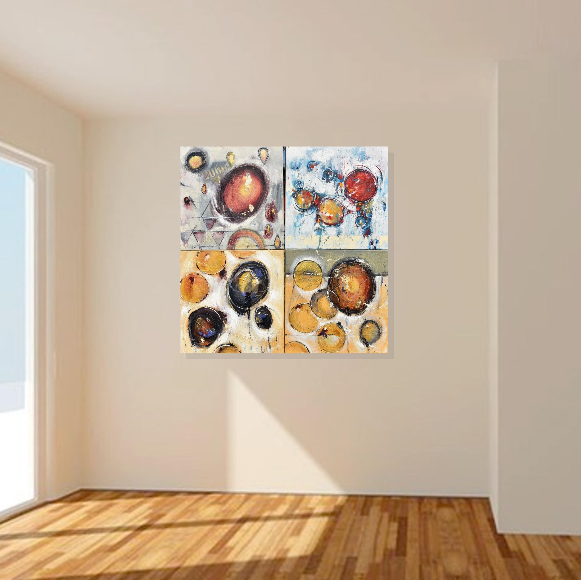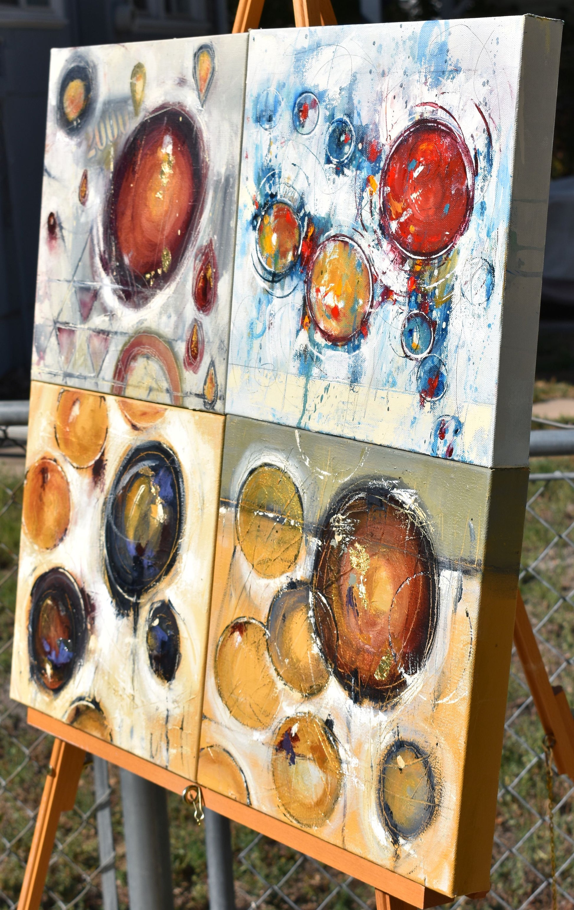 Four separate 12"x12" abstract circle paintings for the price of one!